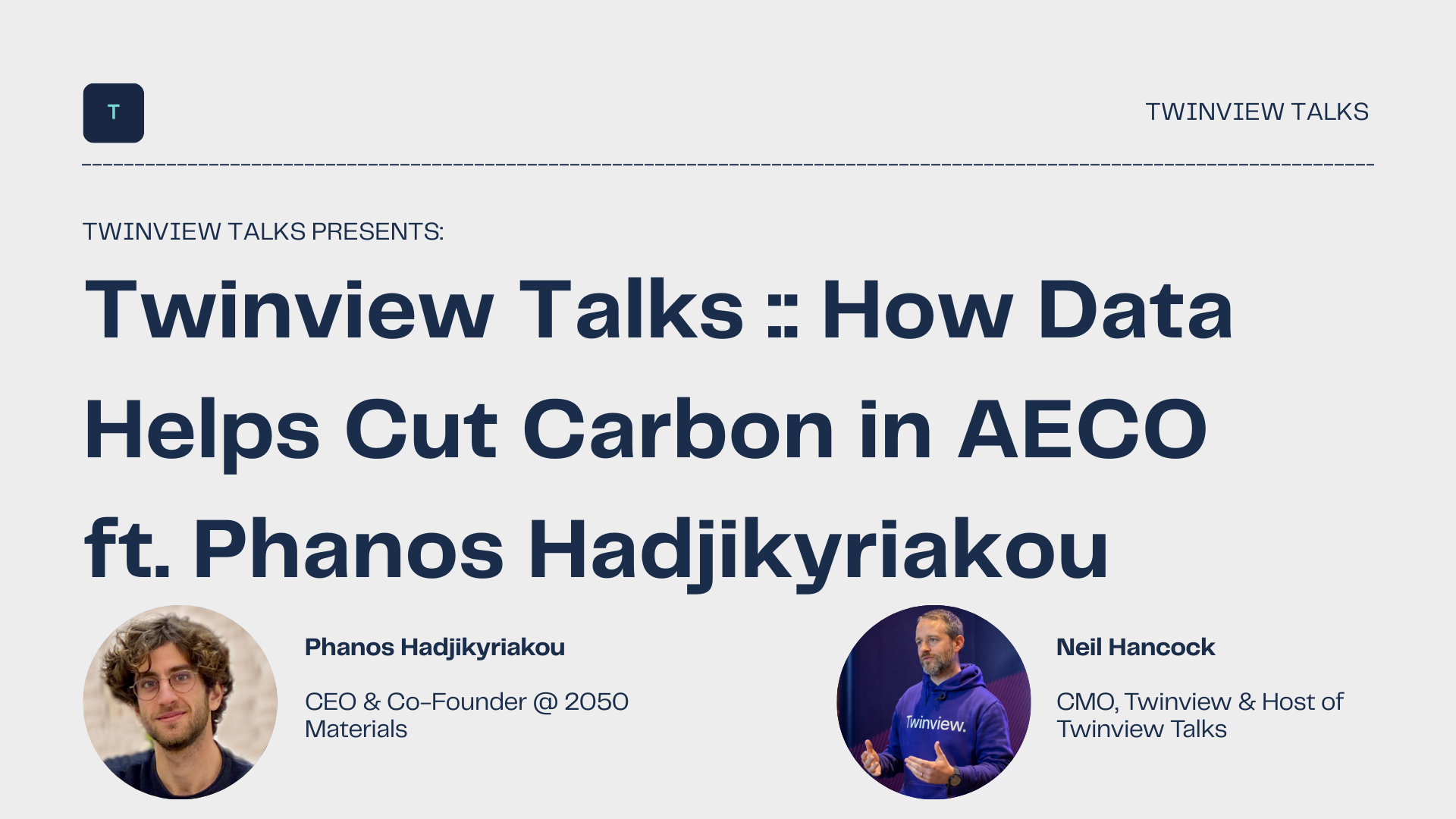 In this episode of Twinview Talks, we speak to Phanos Hadjikyriakou, CEO and Co-Founder of 2050 Materials, about how the AECO industry can address it's carbon challenges, and what role data plays in unlocking those for us.